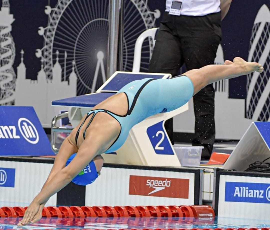 La nostra atleta, che quest’estate ha sostenuto, un anno in anticipo, l’esame di maturità, ha davanti a sé altre sei gare: 50 e 100 stile libero, 100 dorso, 100 farfalla, 200 misti e 4 x 100 stile libero.